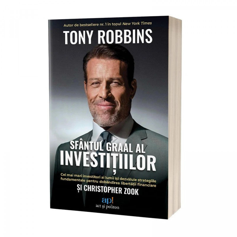 Sfântul Graal al investițiilor: cei mai mari investitori ai lumii își dezvăluie strategiile supreme pentru dobândirea libertății financiare/ The Holy Grail of Investing: The World's Greatest Investors Reveal Their Ultimate Strategies for Financial Freedom de Tony Robbins și Christopher Zook, este a treia carte din trilogia dedicată libertății financiare de strategul nr. 1 al Americii în investiții financiare, după „Banii: Stăpânește jocul” și „De neclintit”. Însă cartea de față nu vorbește doar despre tehnici de investiții și despre unele dintre cele mai rentabile oportunități ale momentului, ci oferă totodată o analiză pertinentă a noii realități post-COVID. O lectură obligatorie nu doar pentru oamenii de afaceri și pentru cei care doresc să își investească banii inteligent, ci pentru toți cei care doresc să se pună la curent cu realitatea lumii în care trăim.